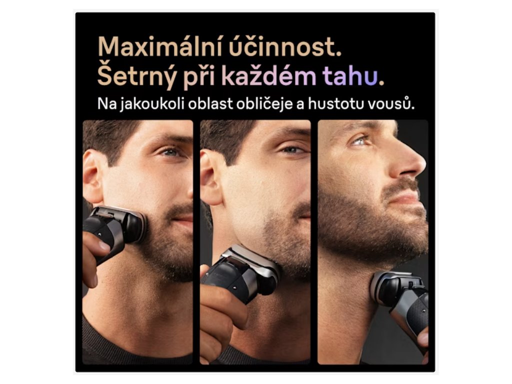 Maximální účinnost při jakékoli hustotě vousů: Technologie Pro SensoAdapt s vysoce přesnými senzory analyzuje hustotu vousů 300krát za sekundu a automaticky přizpůsobuje výkon holení.