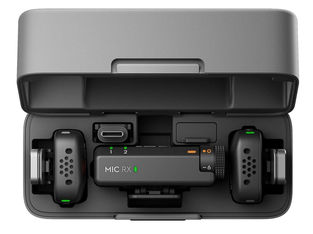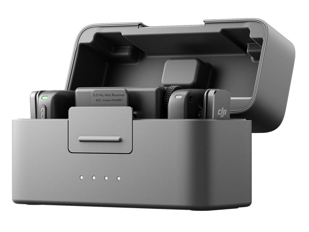 DJI Mic Mini je navržen s důrazem na kompaktnost a praktičnost. Jeho inovativní nabíjecí pouzdro umožňuje přehledně uskladnit dva vysílače, jeden přijímač, adaptéry pro mobilní zařízení a větrné clony. Větrné clony mohou zůstat na vysílačích i během skladování, čímž se celý set stává ještě pohodlnějším pro každodenní používání a přenášení.