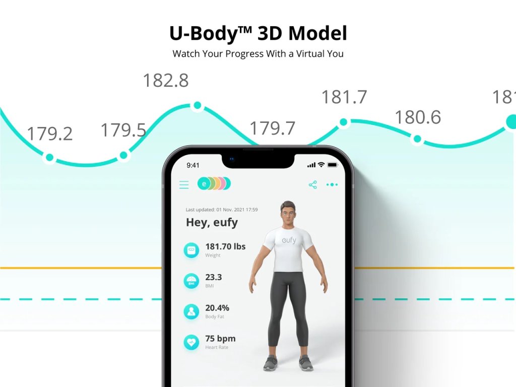 eufy Smart Scale P2 Pro digitální váha s Wi-Fi Bluetooth, 16 měření včetně hmotnosti, srdečního tepu, tělesného tuku, BMI, svalové a kostní hmoty, 3D virtuální tělesný režim, vysoká přesnost 50 g/0,1 lb