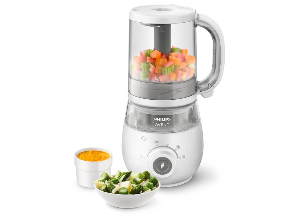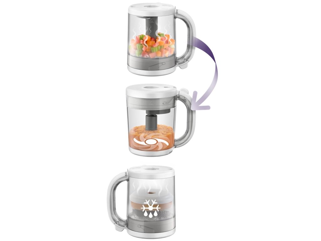 Vařte v páře, mixujte, rozmrazujte a ohřívejte svá domácí jídla.Přístroj pro přípravu zdravé dětské stravy 4 v 1 vám umožní připravit výživná domácí jídla – a vše v jedné nádobě. Stravu můžete podávat ihned nebo ji skladovat v přiložené nádobě a později ohřát, a to díky funkcím ohřevu nebo rozmrazování se snadným použitím. |