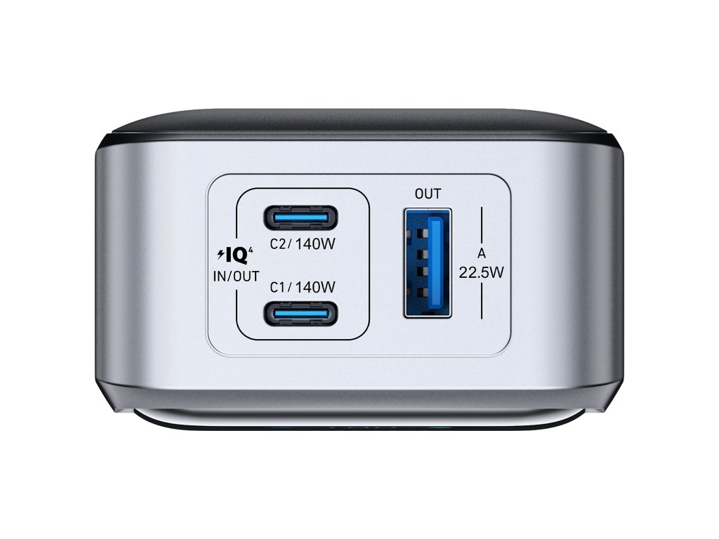 - Díky podpoře vysokého výkonu zvládne napájet i zařízení s odběrem až 140 W přes jeden port USB-C