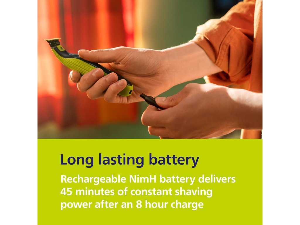 Dlouhá životnost bateriePo 8 hodinách nabíjení poskytne dobíjecí Li-iontová baterie 45 minut konstantního výkonu pro úpravu vzhledu. |
