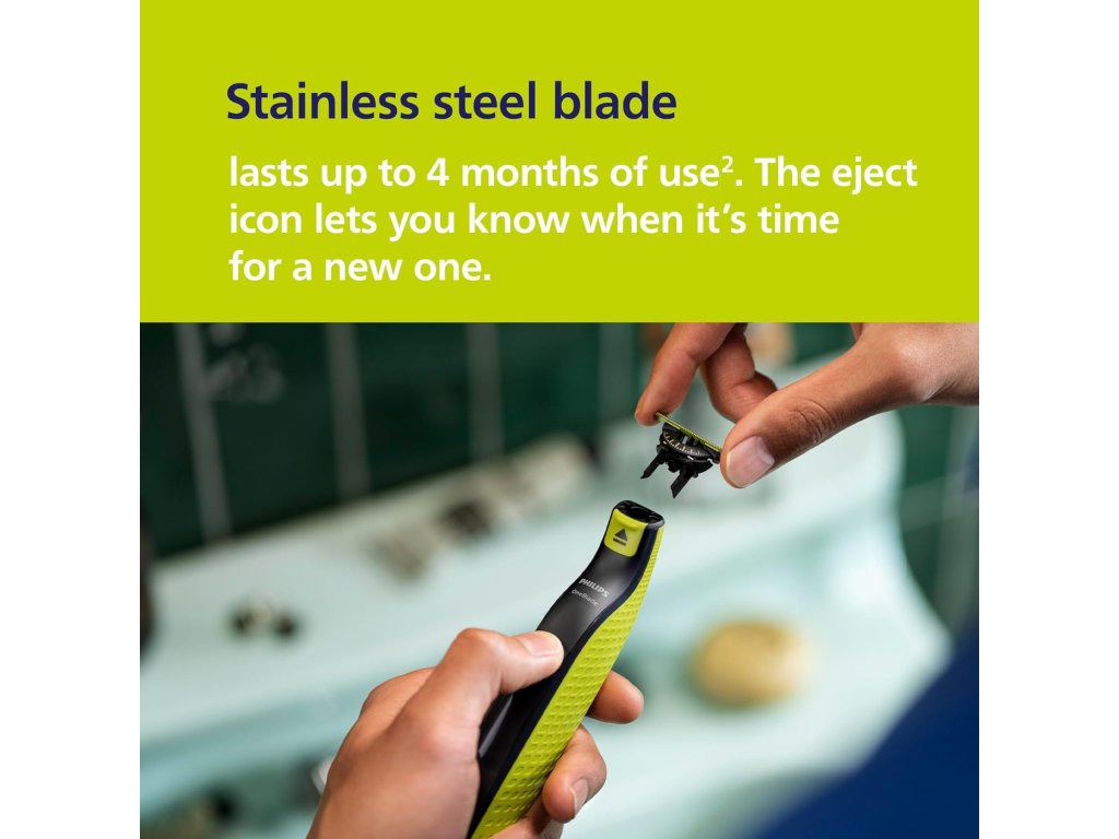 Plně vodotěsnýOneBlade je zcela vodotěsný, takže se snadno čistí: stačí opláchnout pod tekoucí vodou. Můžete použít jak na suché, tak i mokré holení, dokonce i ve sprše – dle vlastních preferencí. Pěnu na holení nepotřebujete. |