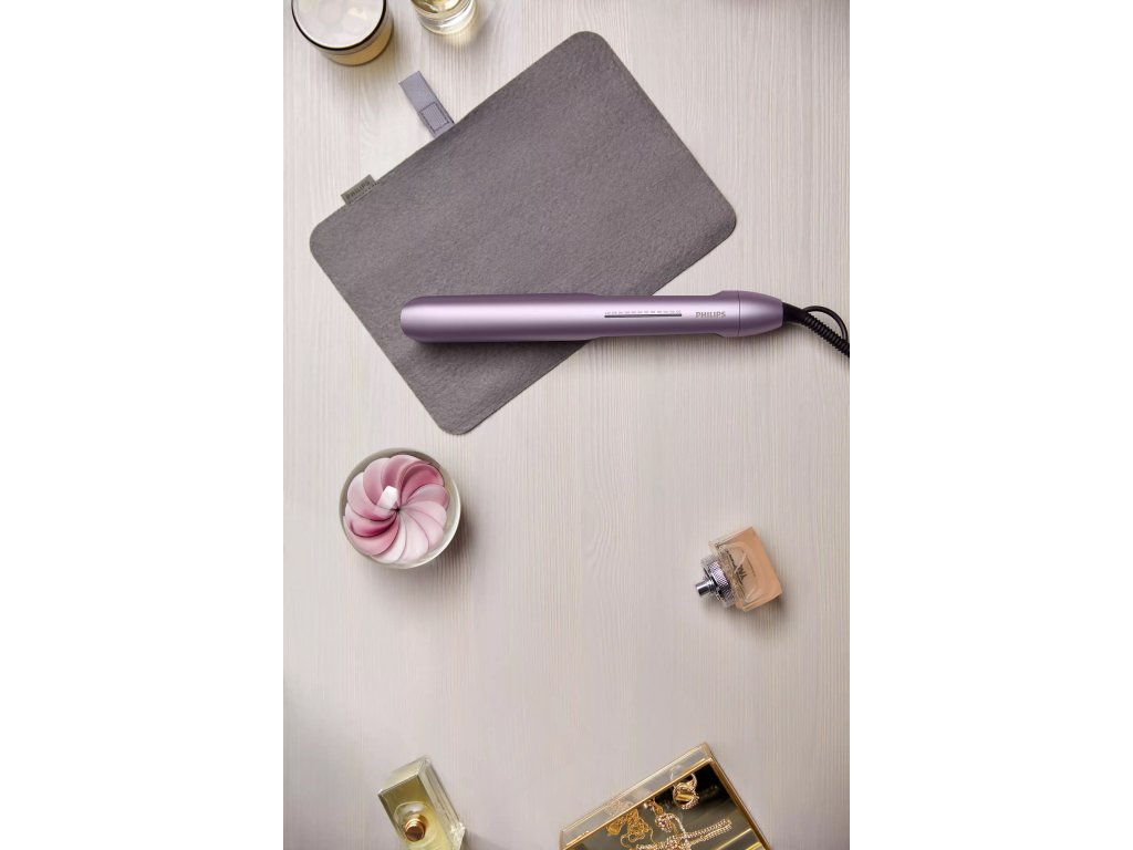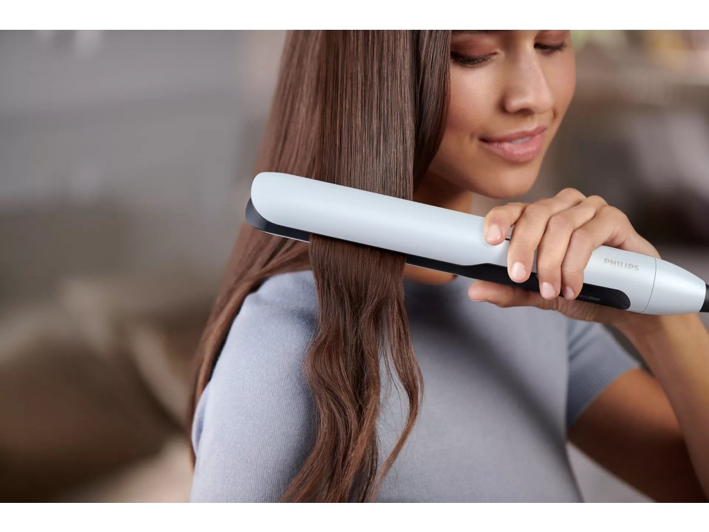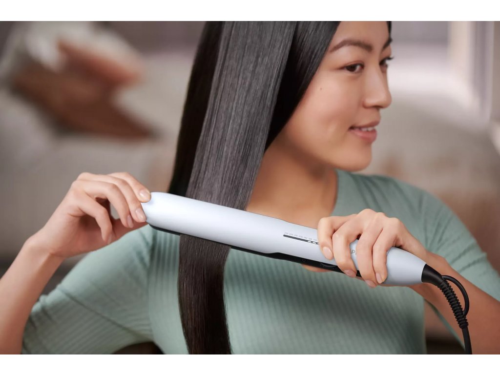 O 50 % rychlejší žehlení vlasů**Díky hladkým žehlícím destičkách žehlička hladce klouže po vlasech, takže strávíte méně času úpravou a vlasy vydrží vyžehlené déle. |
