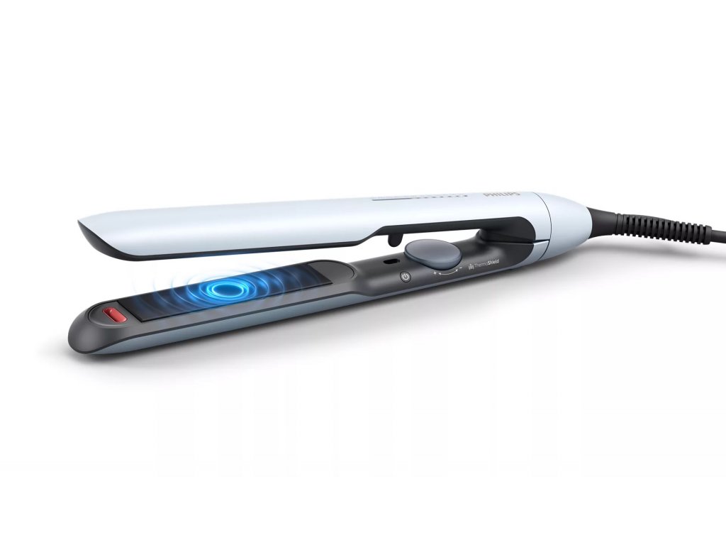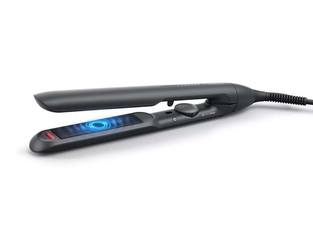 Technologie ThermoShield pro menší poškození teplemDíky technologii ThermoShield dosáhnete lepšího stylingu a menšího poškození teplem. Čidlo upravuje teplotu tak, aby vaše vlasy dostaly perfektní styling od kořínků až ke konečkům. |