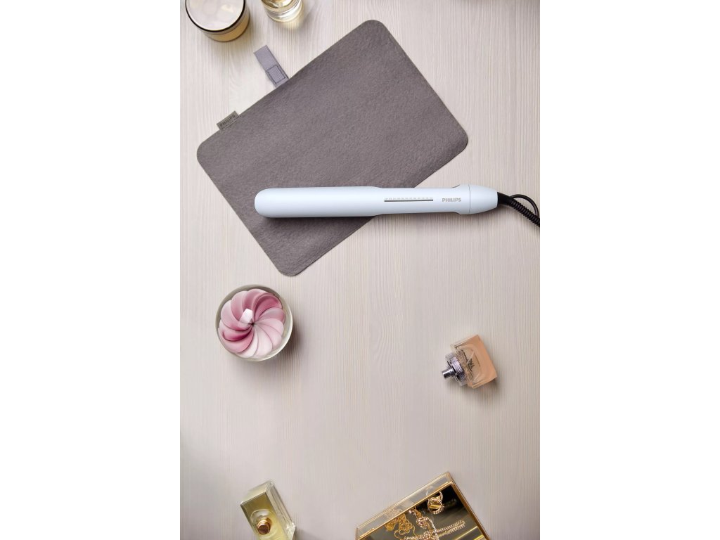 Tepluvzdorná rolovací podložka je součástí baleníPraktická tepluvzdorná rolovací podložka vám pomůže upravovat vlasy kdekoli. Navíc vám umožní žehličku bezpečně ukládat, ať už doma nebo na cestách. |